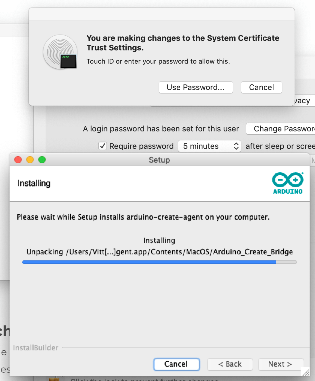 Ne fermer aucune de ces fenêtres pendant l'installation. On commence par la fenêtre d'Arduino.
