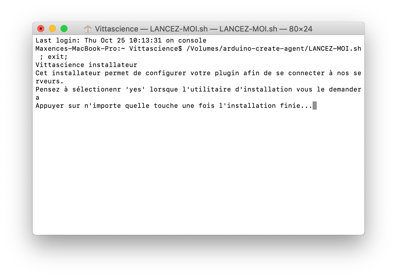 Dernière ligne droite ! Sur la fenêtre blanche (Terminal), cliquez dedans et appuyer sur n'importe quelle touche.