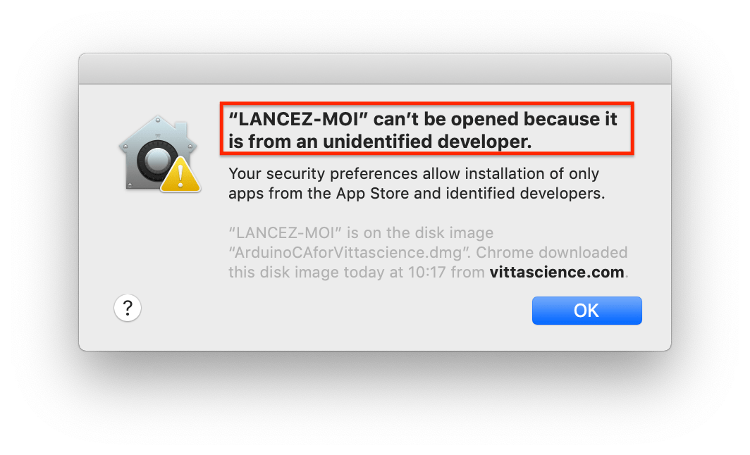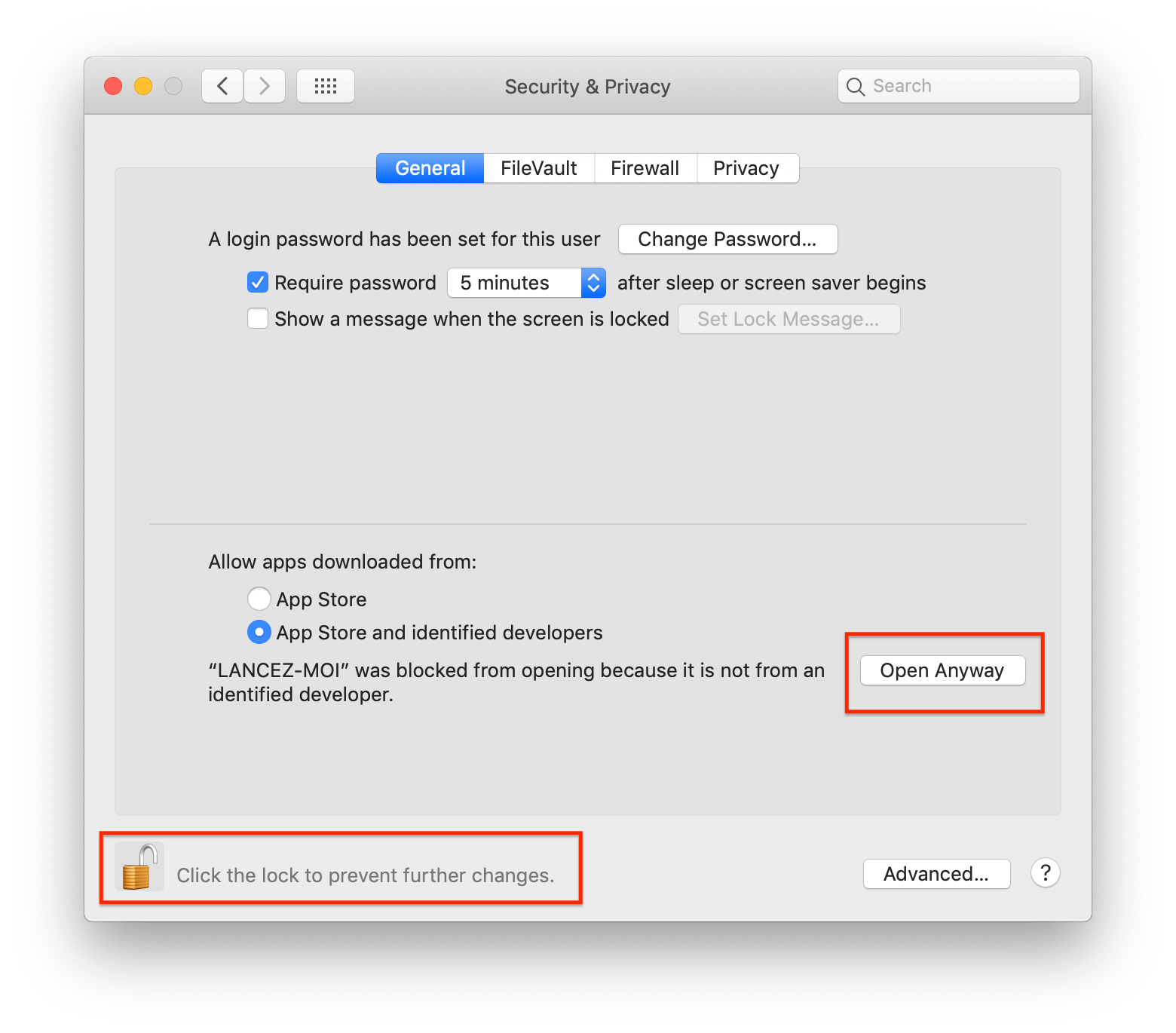 Pour pouvoir l'ouvrir, veuillez vous rendre dans Préférences Système > Sécurité et Confidentialité puis dans l'onglet Général.